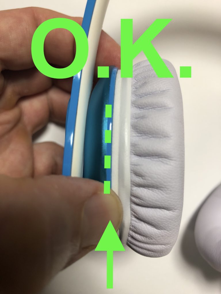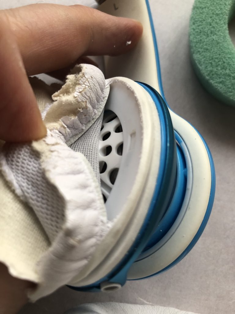 Glue visible when pulling on the removable ear pad. イヤーパッドを剥がすと、ボンドが見えます。
