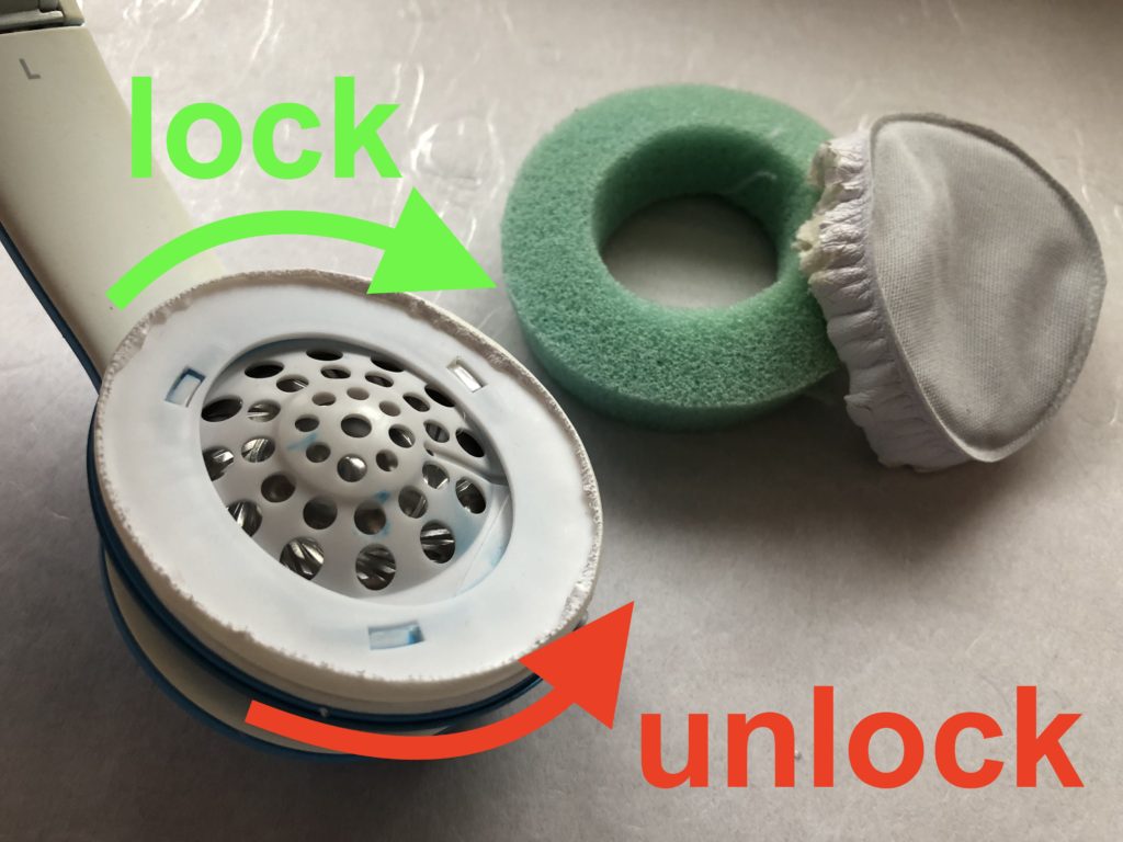 Remove the old pad. Most likely you may not be able to simply unlock and remove the exchangeable ear pad just by turning counter-clockwise.