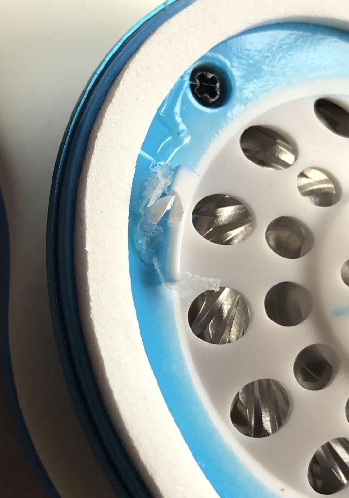 イヤーパッド装着部は、回してはめ込むようになっていますが、製造過程でボンドが使われています。