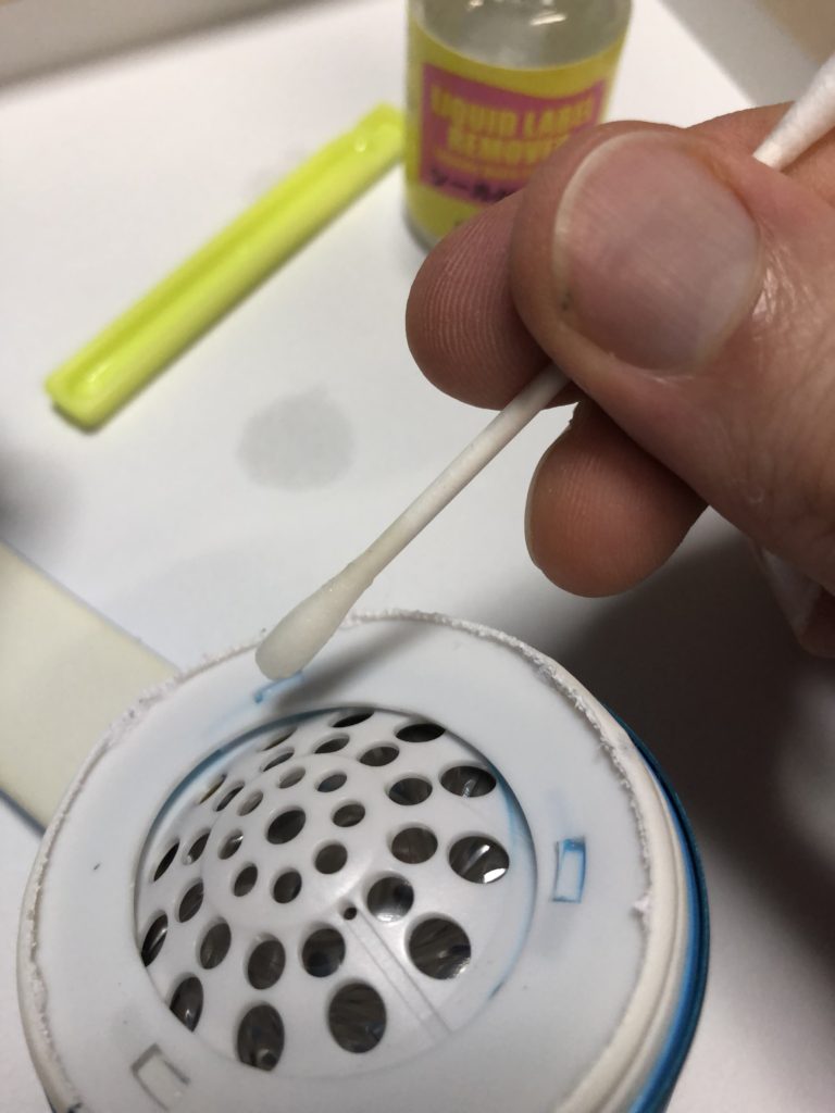 Glue remover / solvent is strongly recommended to avoid damaging the tiny plastic hooks. A few drops may be sufficient to loosen the glue and unlock the pad. Avoid spilling as this may damage the speaker. 小さなプラスチックのフック部分を壊さないためにも、シール剥がし液の利用をお勧めします。ボンドの部分を柔らかくしてパッドをうまく外すためには、数滴の剥がし液でOKです。剥がし液が多すぎて垂れ落ちてしまうと、スピーカー部分が壊れる原因となります。